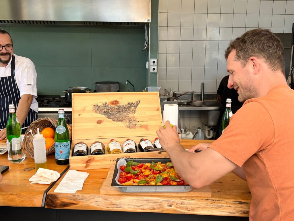 Insieme al nostro chef, che comunicherà in inglese, approfondirai la conoscenza degli ingredienti e le tecniche per esaltarne l’autenticità: dalla terra al piatto, scoprirai come nasce l’eccellenza siciliana. Infine, gusterai il frutto del tuo lavoro insieme a tutti i partecipanti.